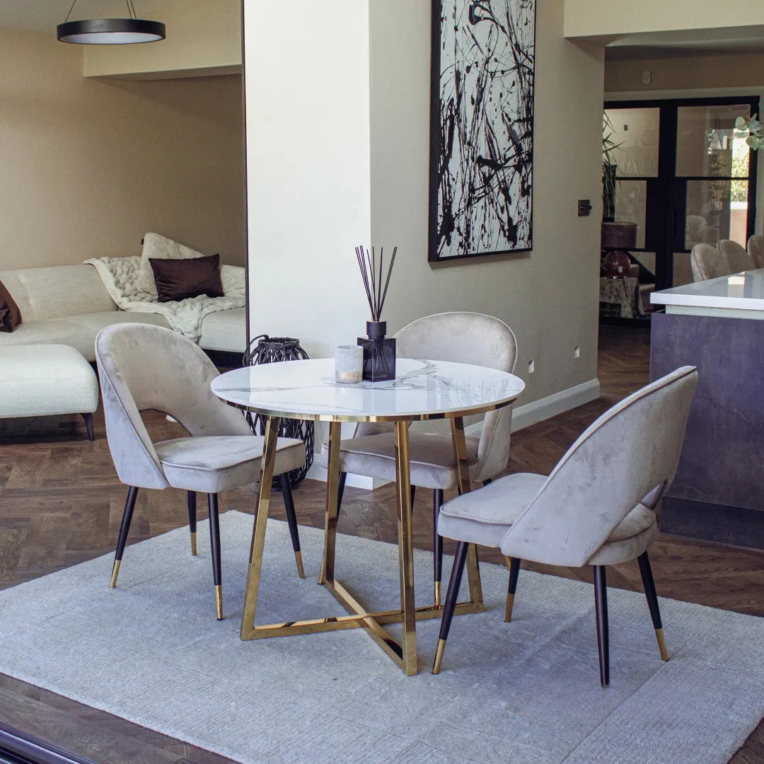 Designed for comfort and style, the Bjorn Champagne Velvet Dining Chair features plush velvet upholstery and sleek Scandinavian-inspired legs with elegant gold tips. Its modern silhouette adds warmth and sophistication to any dining space.