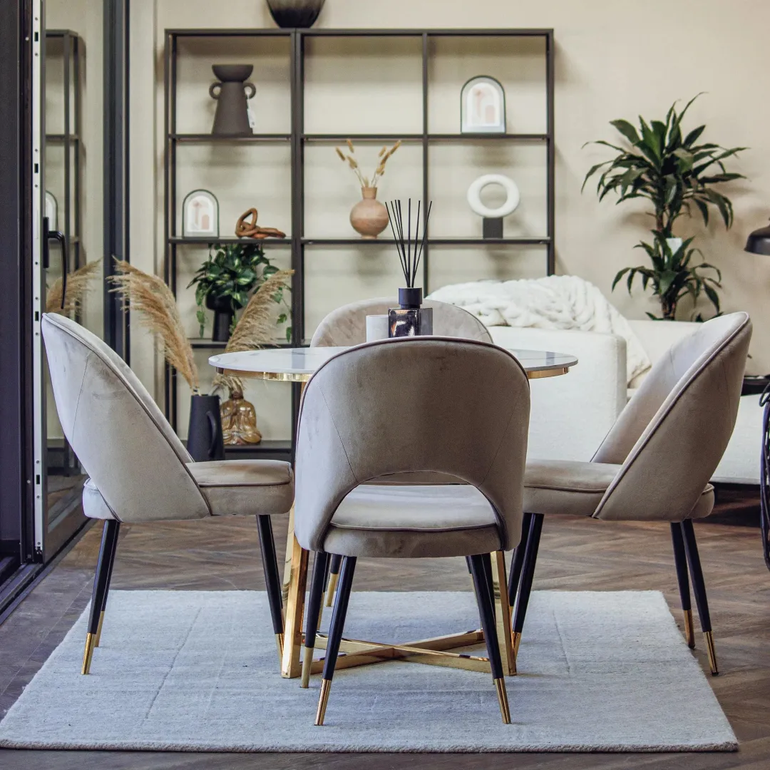 Perfect to pair with wooden or glass tables, these chairs combine luxurious texture with ergonomic support. All materials are UK fire retardant tested.