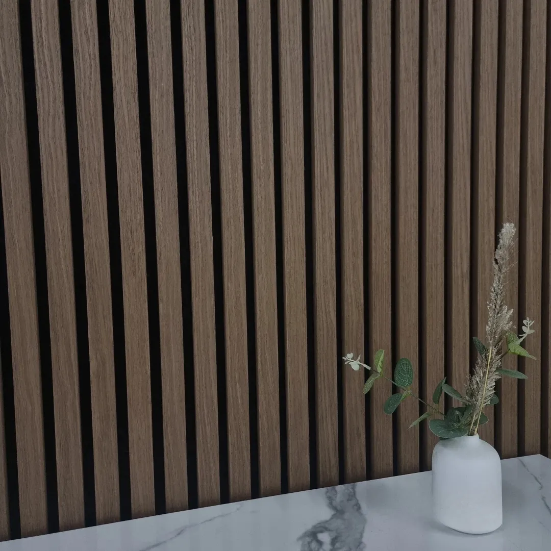 Smoked Oak Slatted Panels with Contemporary Depth