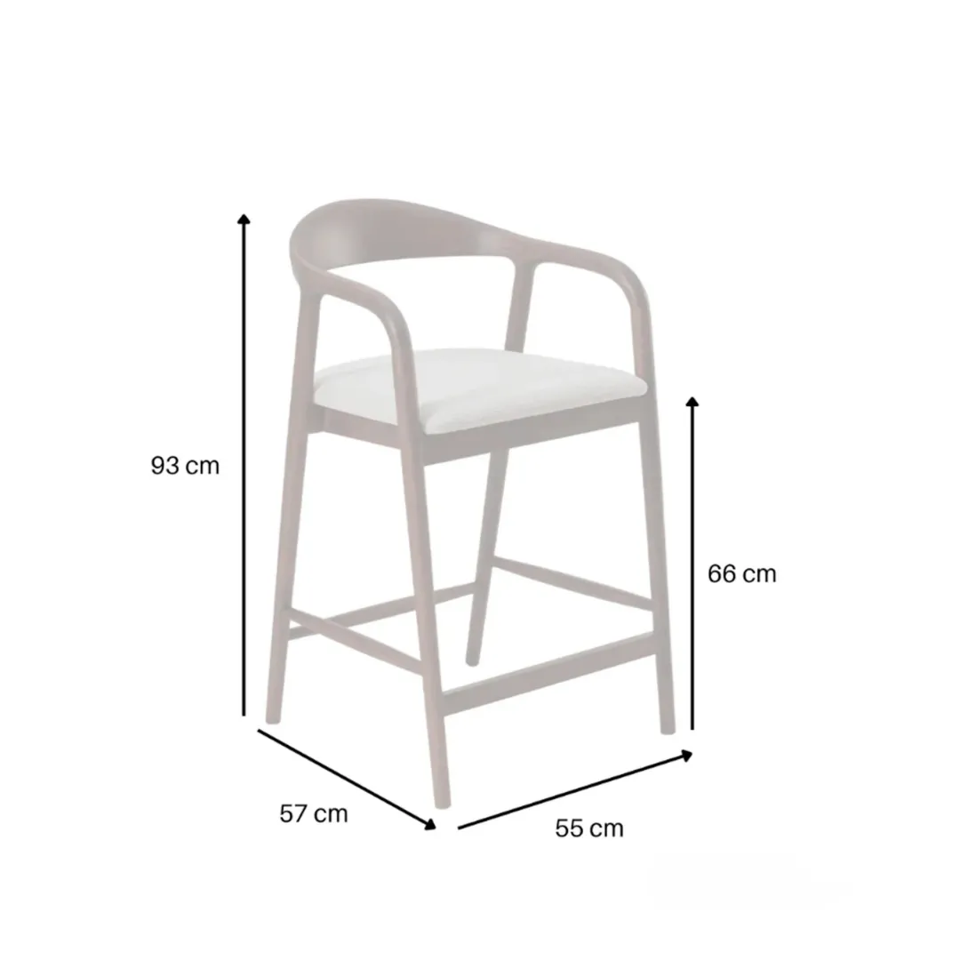 The Tess bar stool pairs a walnut-coloured frame with soft oatmeal bouclé upholstery, creating a warm yet refined statement for modern kitchens and breakfast bars. Its sculpted form and balanced proportions offer everyday comfort with a quietly luxurious feel.